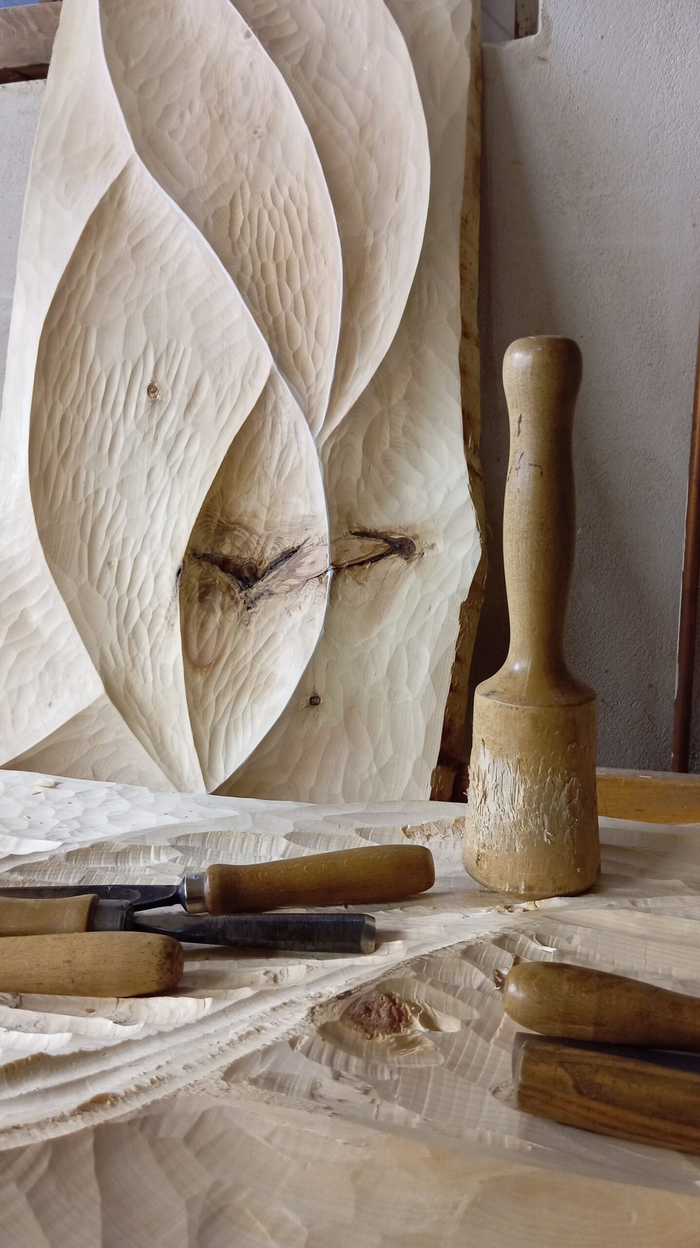 **Malen mit dem Schnitzmesser** – das erwartet dich an diesen offenen Ateliertagen. In meiner Arbeit trifft **zeitgenössische Kunst** auf das **ursprüngliche Handwerk des Holzschnitzens**.