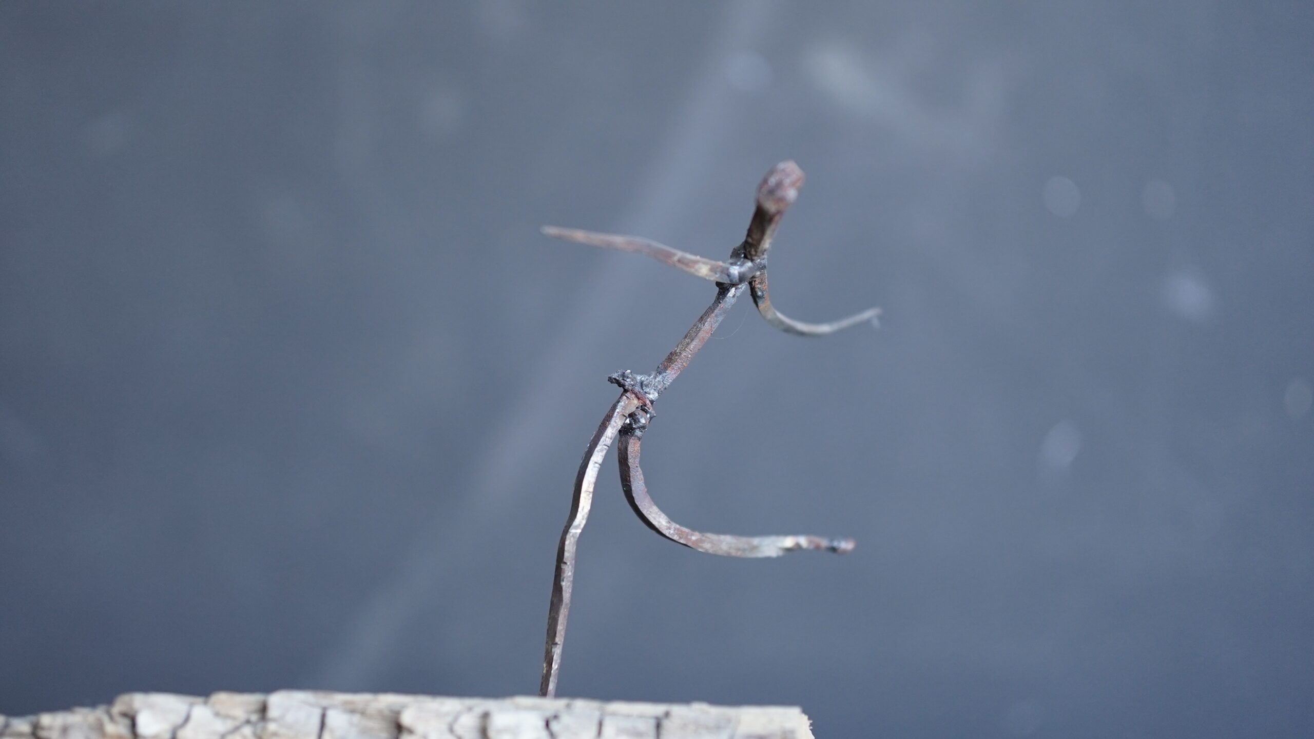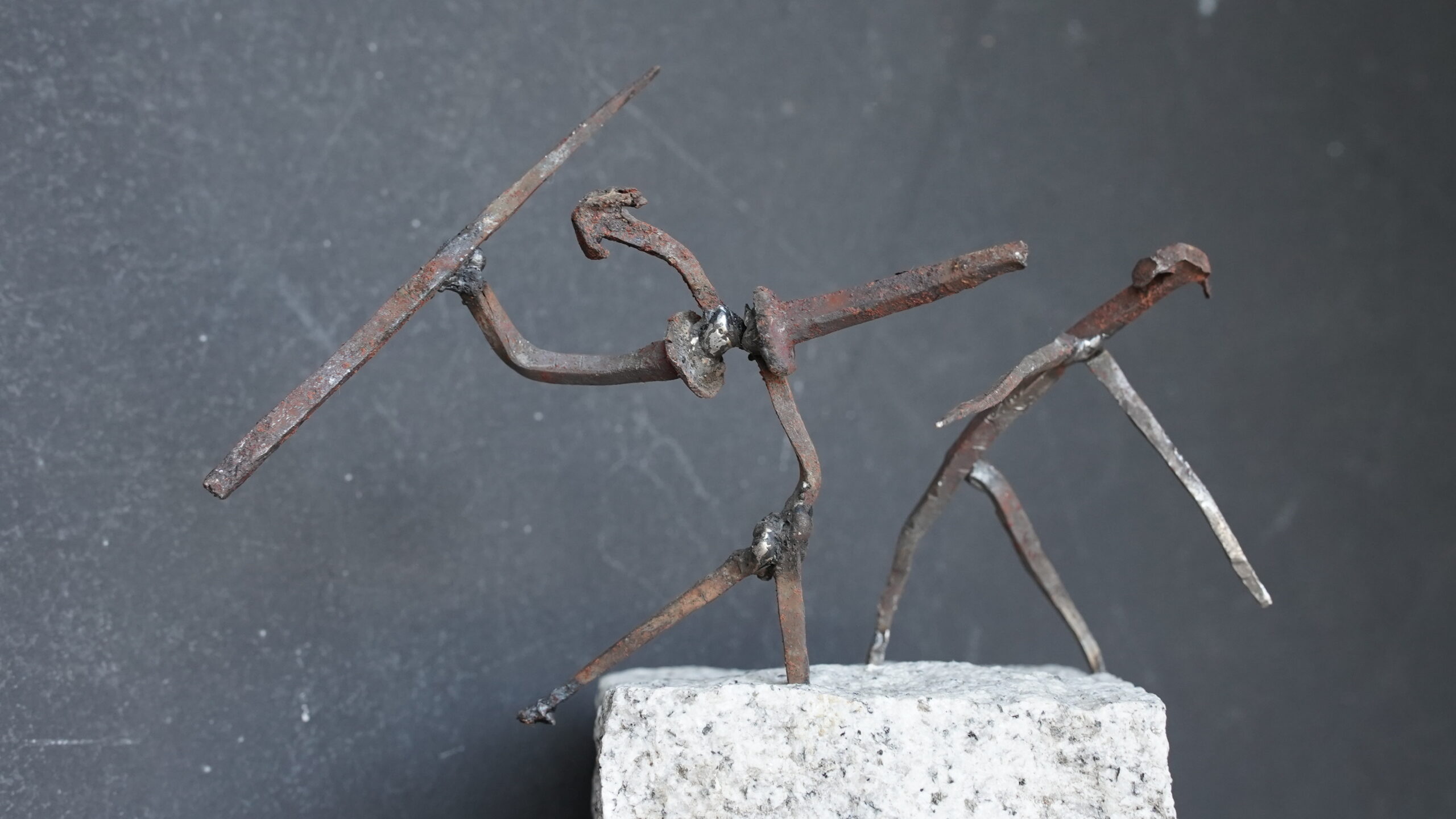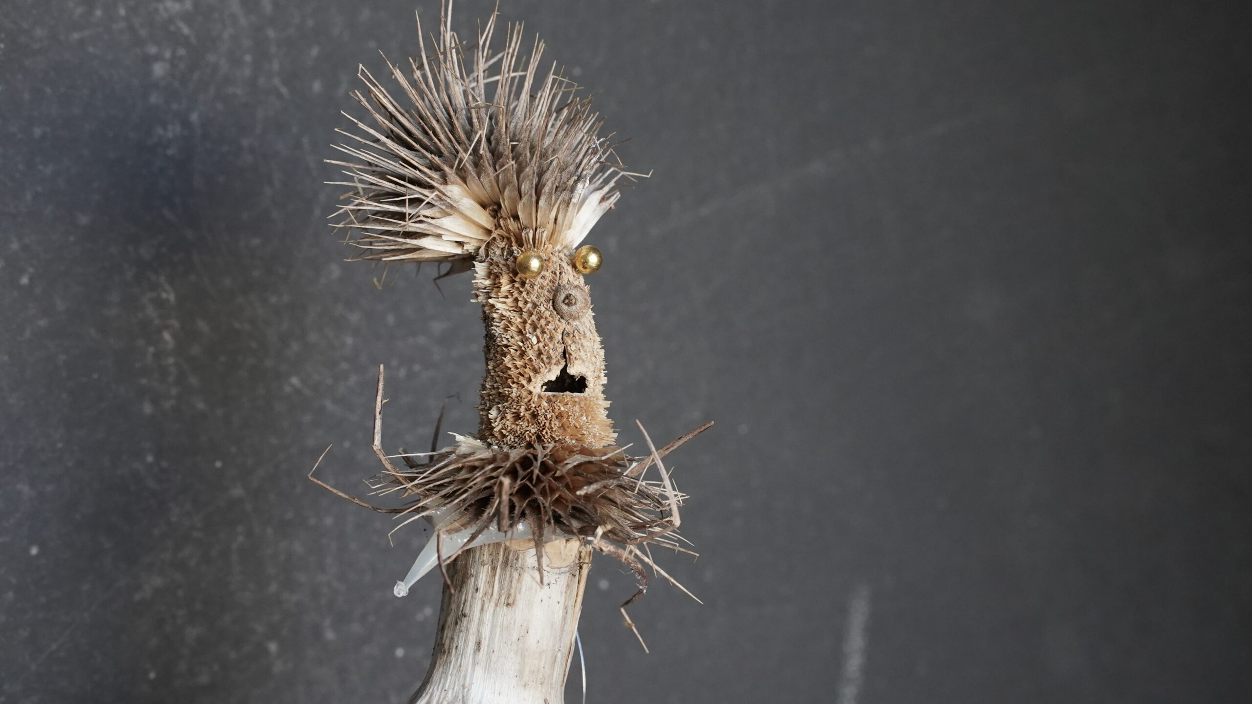 seinen Skulpturen und Installationen verbindet er Naturmaterialien wie Holz mit Metall