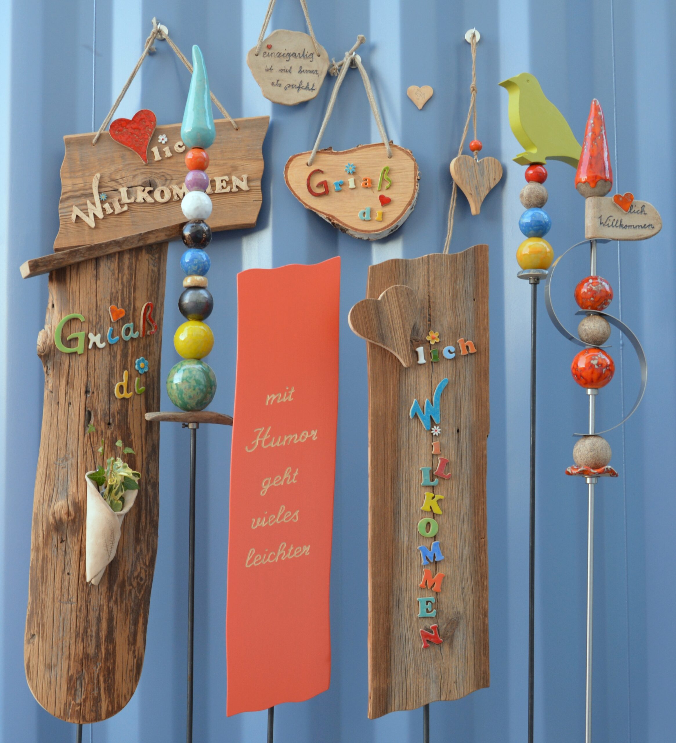 Griaß di, Willkommen und Spruchschilder aus Holz und Ton