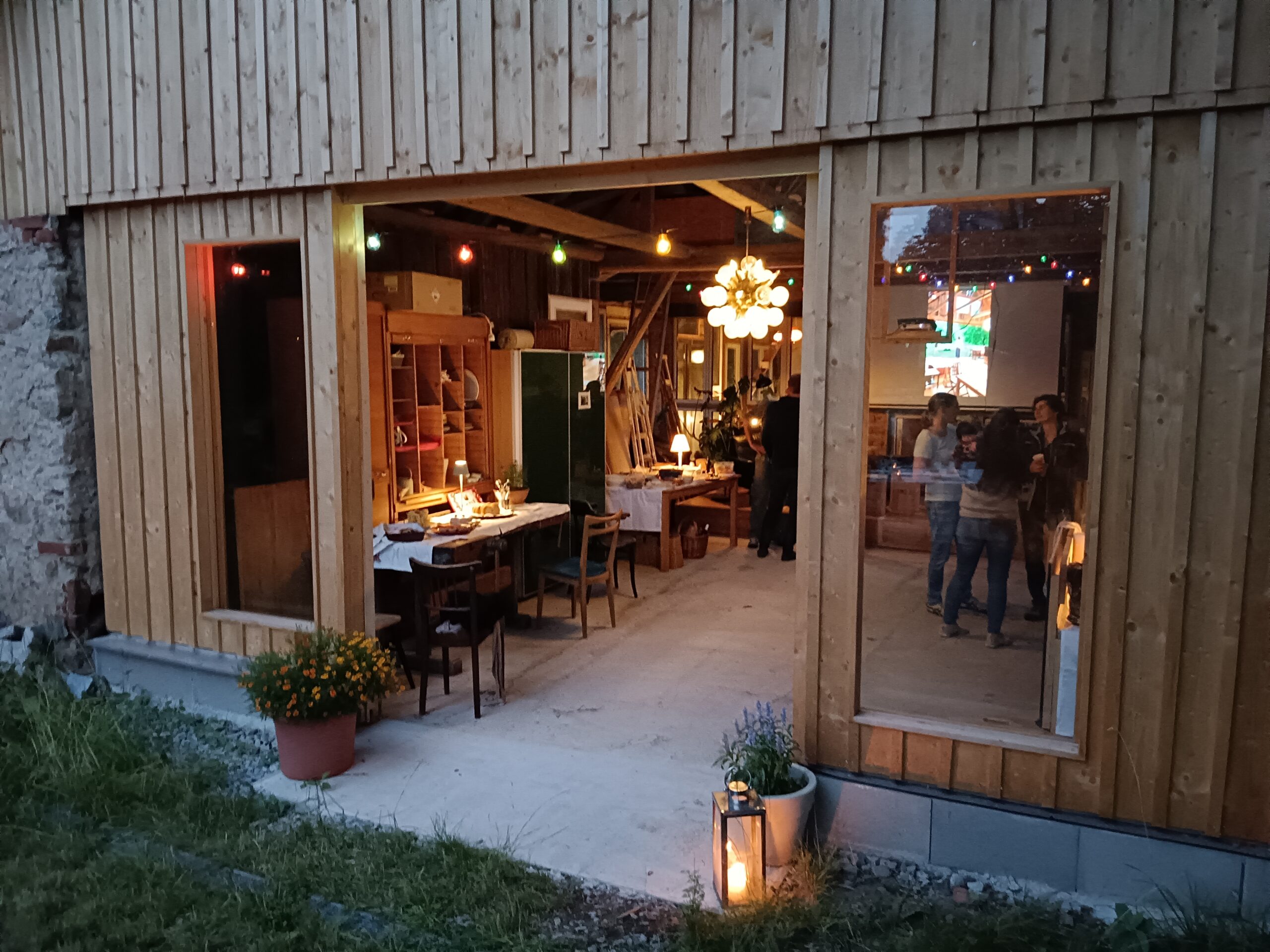 Besuche die umgebaute Scheune, die das Kollektiv living rooms seit 2018 als Sitz und Atelier verwendet und erfahre mehr über die Arbeit der Künstler:innen in der Region
