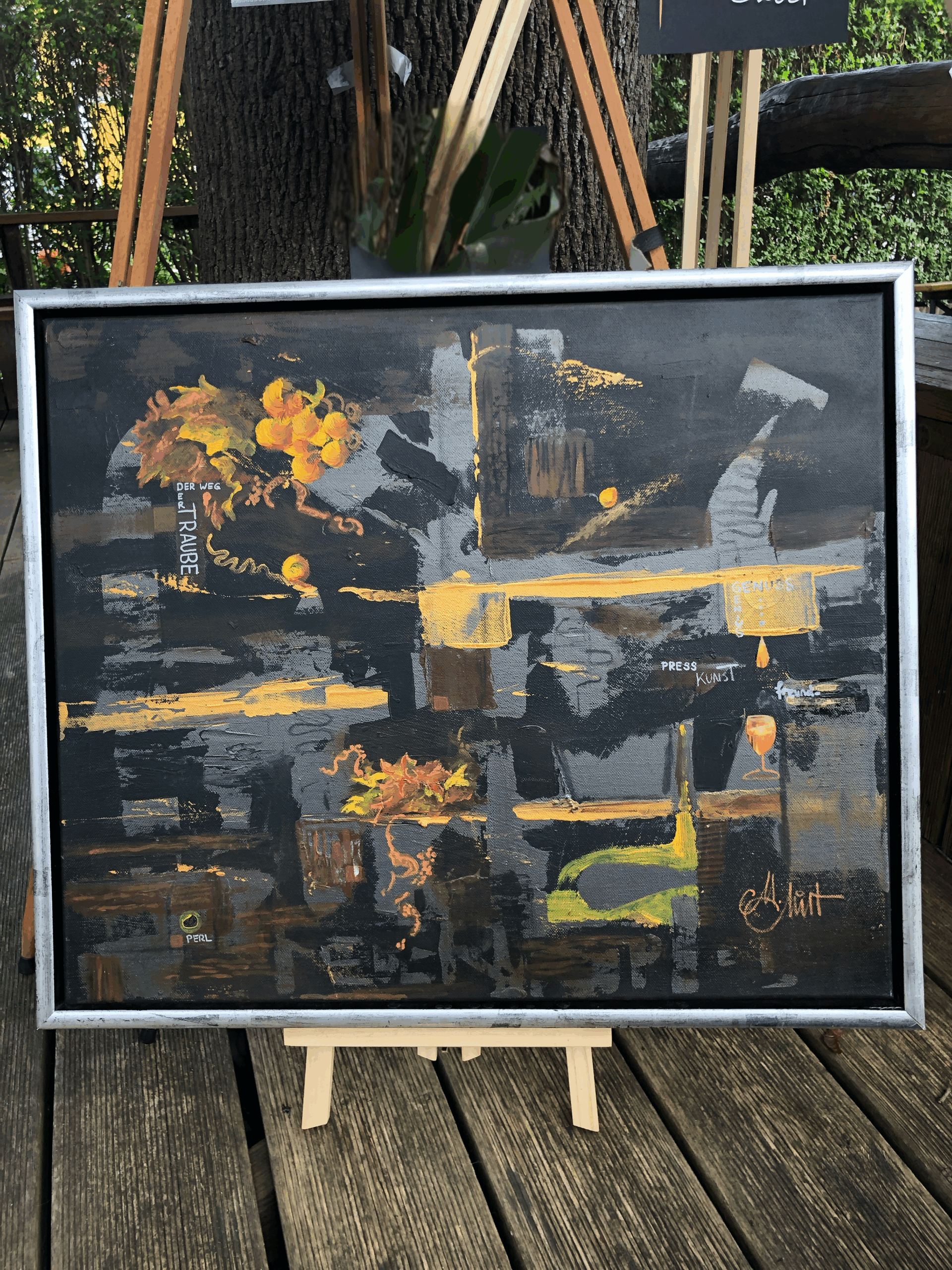 Aktuell setze ich mich in meinen Werken mit Glanz und Stille, Weinmomenten und goldenen Fragmenten des Alltags, leuchtenden Spuren, abstrahierten Figuren, Porträts mit Tiefe und Collagen auseinander – und immer wieder stehen Erinnerung, Wandel und das Nicht-Gesagte im Mittelpunkt.