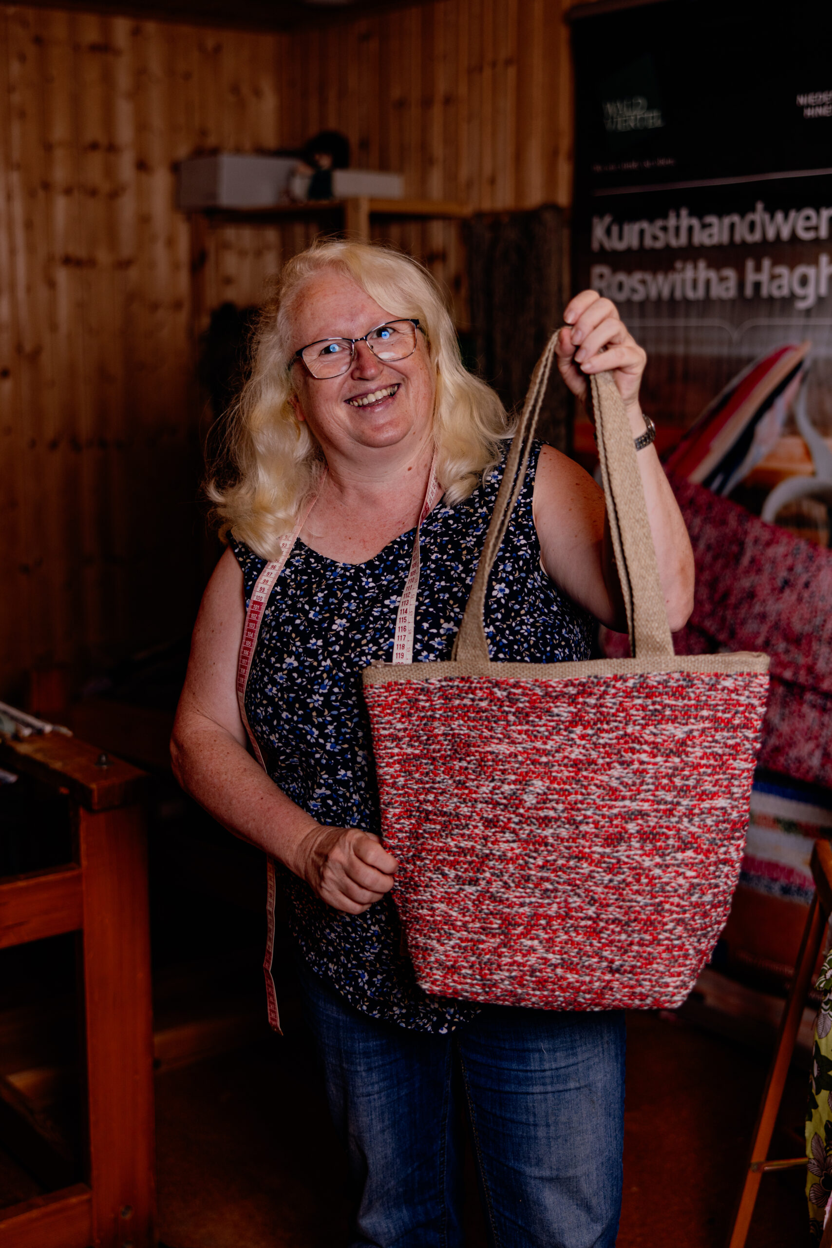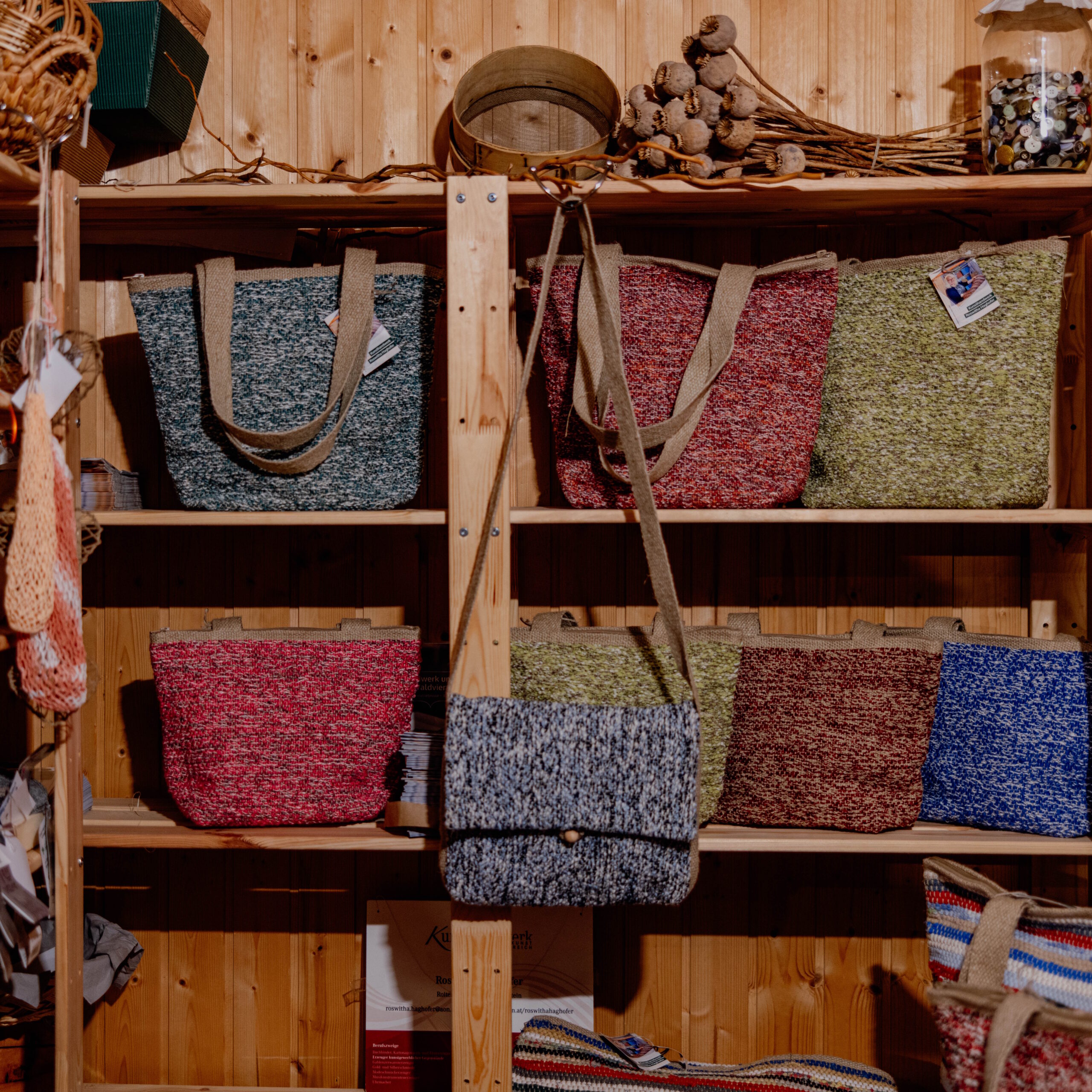 In meiner Weberstube entstehen Taschen und Teppiche. Auf Nachhaltigkeit wird großer Wert gelegt,